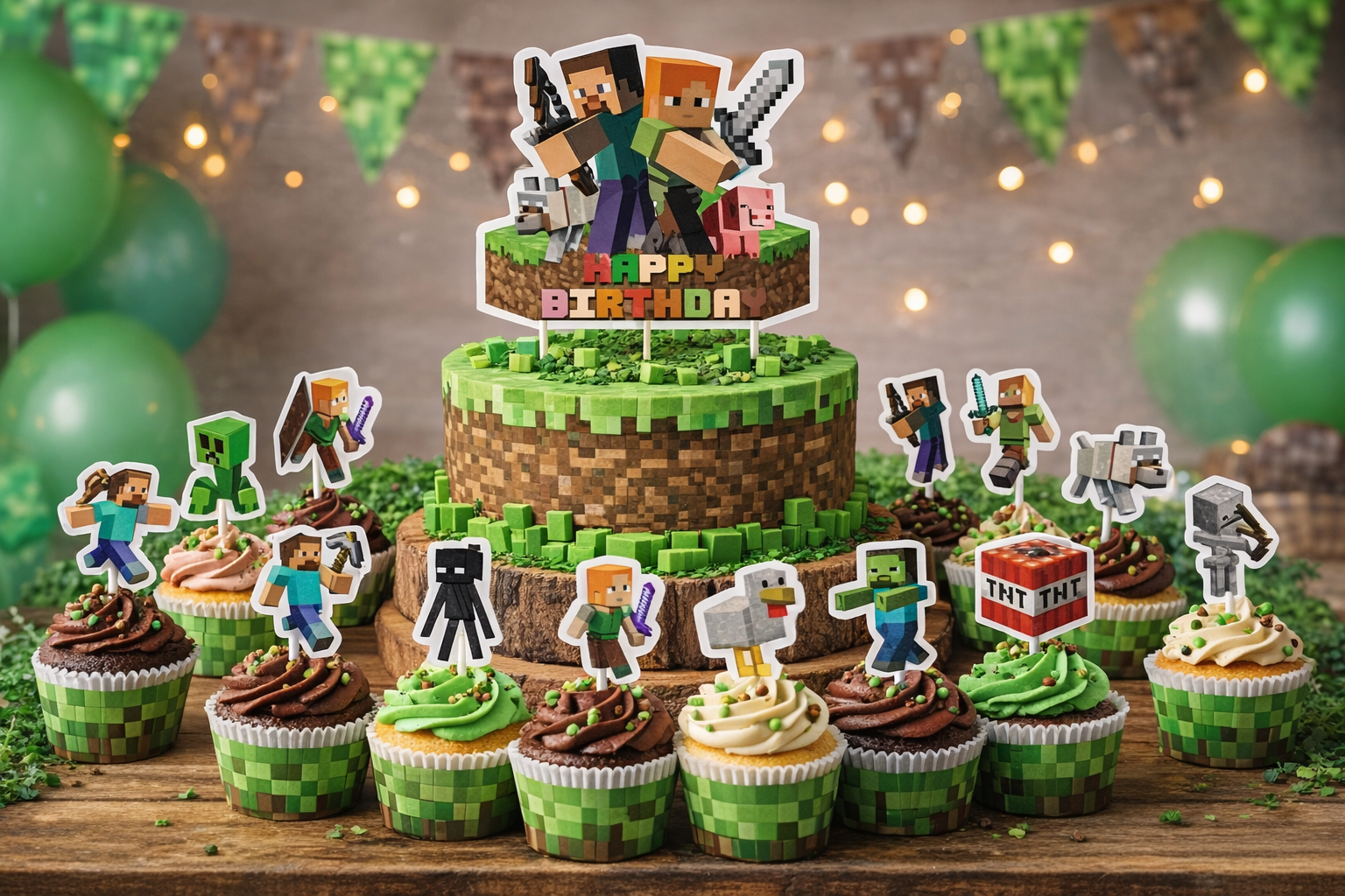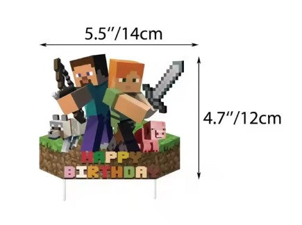 Taartdecoratie – Minecraft-stijl – Happy Birthday (16-delig) - Game Thema